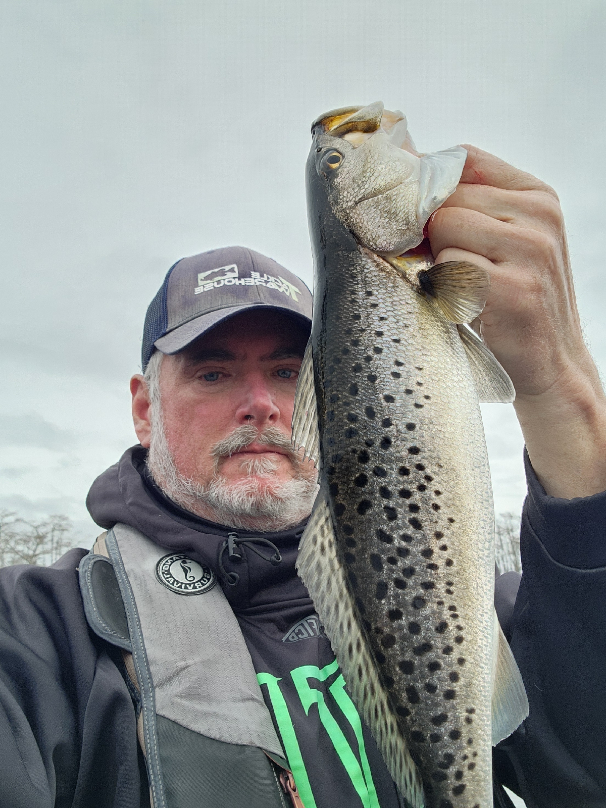 Today was a cold cold day with the air temp starting at 39 and the water temp at 42. The fish bit good all day catching 6 different species all using the Mega Live.